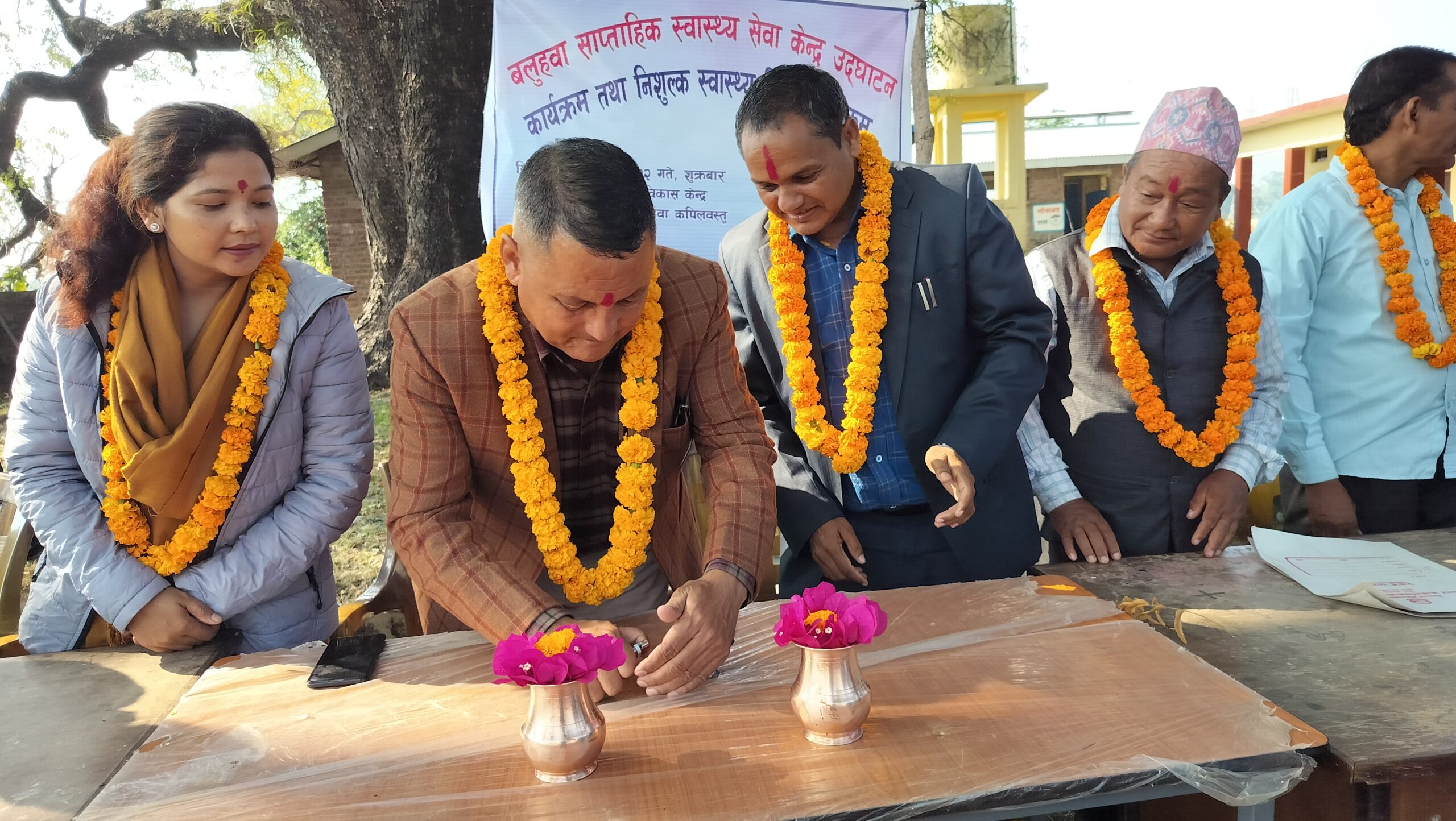 कपिलवस्तुको शिवराज नगरपालिका ३ बलुहवामा साप्ताहिक स्वास्थ्य सेवा केन्द्र उद्घाटन गरिएको छ । वडामा रहेको स्वास्थ्य चौकी स्थानीयलाइ पाएक नपरेको हुदा गाउँ केन्द्र स्थापना गरिएको वडा अध्यक्ष टेकलाल सापकोटाले बताउनुभयो । अहिलेलाइ साप्ताहिक रुपमा सेवा सुरु गरेको र सेवाग्राहीको अवस्था हेरेर दैनिक सेवा सुरु गरिने सापकोटाले बताउनु भयो । वडा मिलान यहाँ बाट सम्भावना नभएको केन्द्रमा सिफारिस भएपनि कार्यान्वयन नभएको बताउनुभयो ।